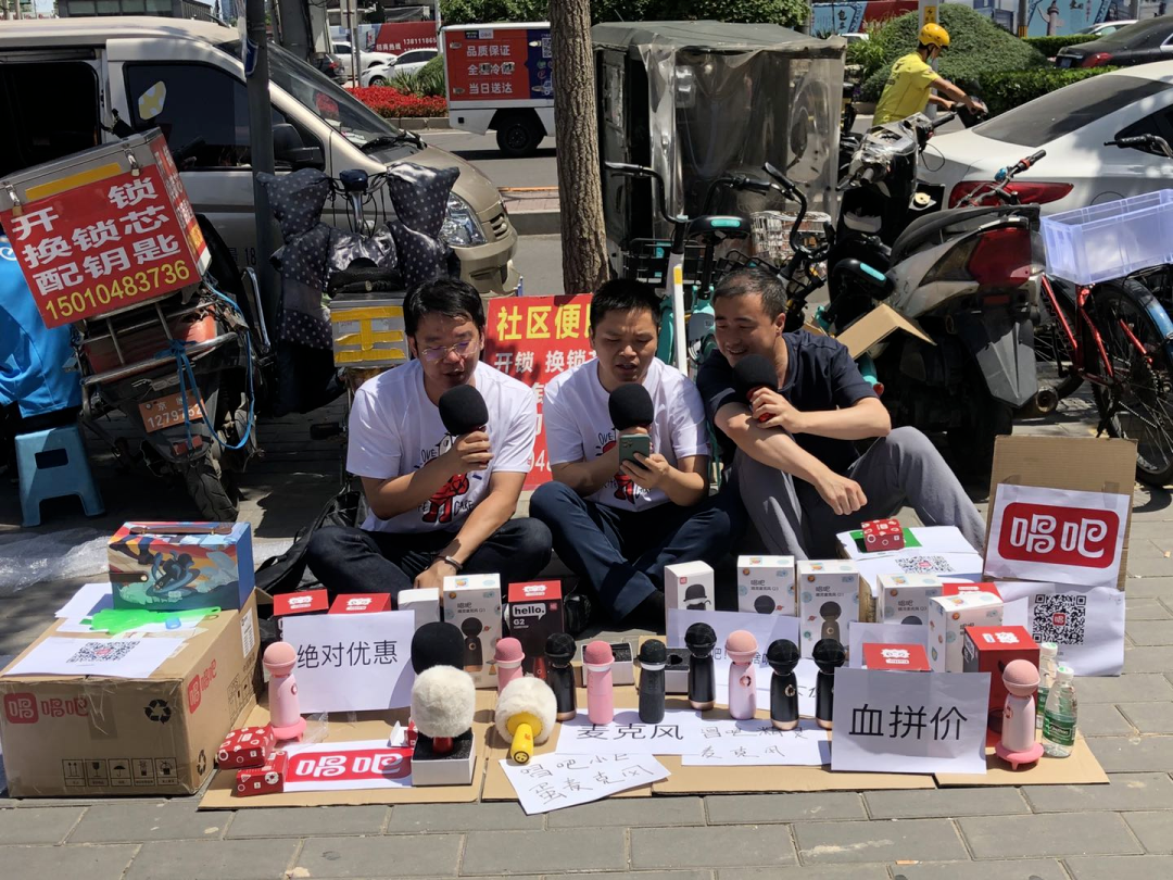 无独有偶,唱吧的CEO、CFO也开启了摆地摊模式模。只不过招聘之余,卖话筒才是真正的目的。